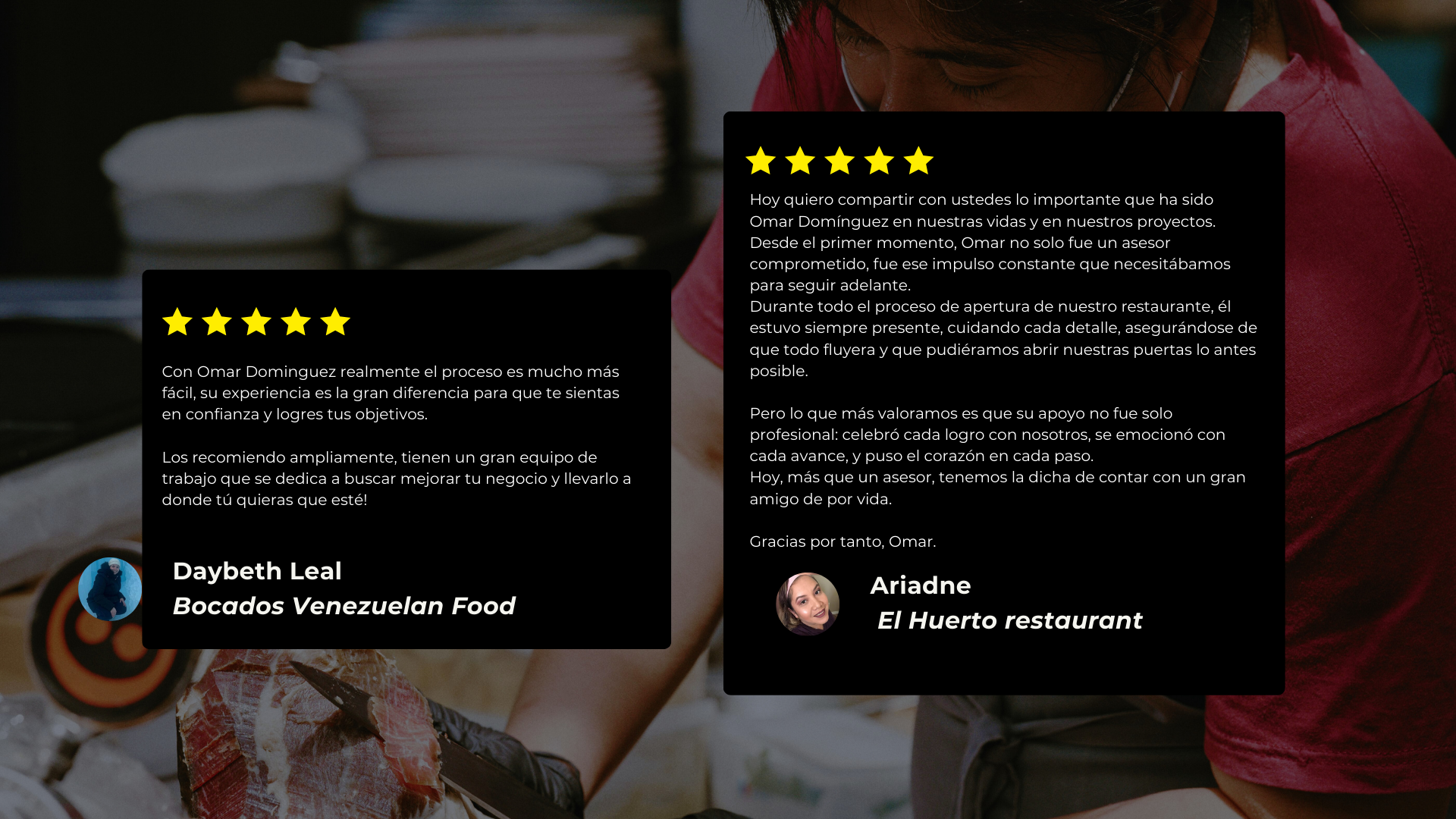 Trabajo con personas que aman la cocina pero que necesitan guía en las demás áreas del negocio. Ayudo a despejar dudas, resolver miedos, organizar operaciones y convertir la pasión en un proyecto rentable, profesional y sostenible. Lo que me diferencia es la pasión auténtica por ver crecer a otros.